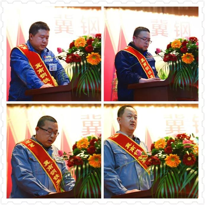 先進單位代表文豐西區(qū)煉鋼廠劉密林、裕華燒結(jié)廠任彥超,以及勞模代表裕華高線廠王軍海、文豐安環(huán)處牛亮分別上臺進行發(fā)言。