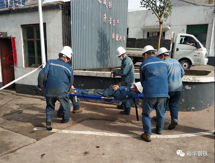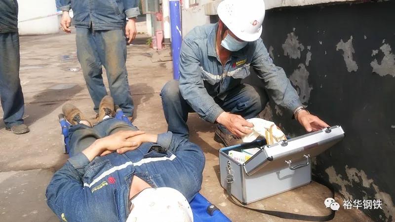 演練模擬為正午時(shí)分,維修工王某和郭某正在進(jìn)行戶外電氣焊作業(yè),兩人連續(xù)工作一小時(shí)后,發(fā)現(xiàn)帶來(lái)的電焊條用完,郭某隨即離開工作現(xiàn)場(chǎng)去拿電焊條。郭某走后不久,王某突然感到頭暈眼黑,暈到在地,郭某返回后發(fā)現(xiàn)王某暈到,意識(shí)到是中暑現(xiàn)象,立即用對(duì)講機(jī)向班長(zhǎng)匯報(bào),班長(zhǎng)接到通知立即向工段長(zhǎng)匯報(bào)并請(qǐng)求救援。工段長(zhǎng)立即通知分廠安全科,并啟動(dòng)中暑應(yīng)急救援預(yù)案,救援人員接到指令后立即趕往事故現(xiàn)場(chǎng)進(jìn)行施救。